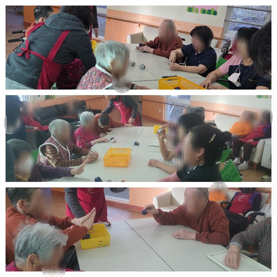 또한 서로 마주 보며 오재미를 던지고 받는 활동을 통해 자연스럽게 웃음과 교류가 이어졌으며, 어르신들께서 즐겁고 행복한 시간을 보내셨습니다.