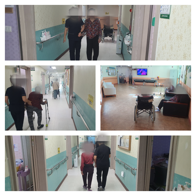 어르신들의 하체 근력 유지와 건강 증진을 위해 실내 산책 활동을 진행하였습니다. 천천히 걸으며 몸을 움직이는 시간을 가졌으나, 피로감을 호소하시며 “조금만 하겠다”고 말씀하시는 어르신들도 계셨습니다.