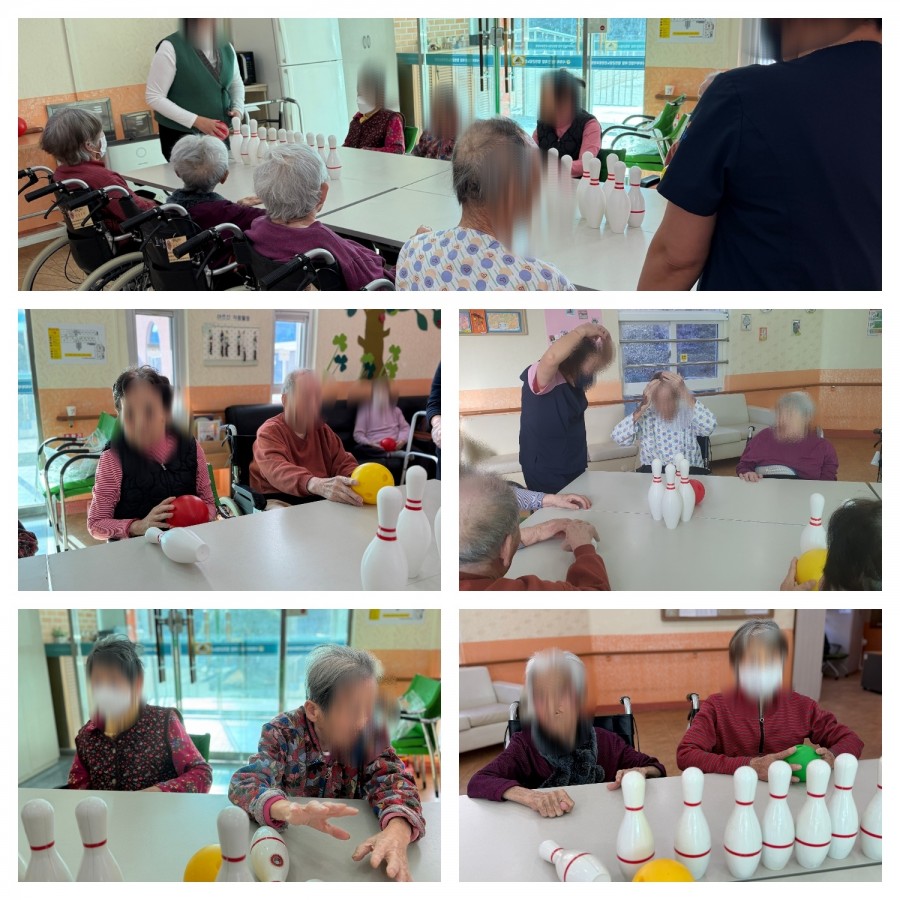 어르신들과 함께 신체활동 프로그램으로 볼링게임을 진행하였습니다.